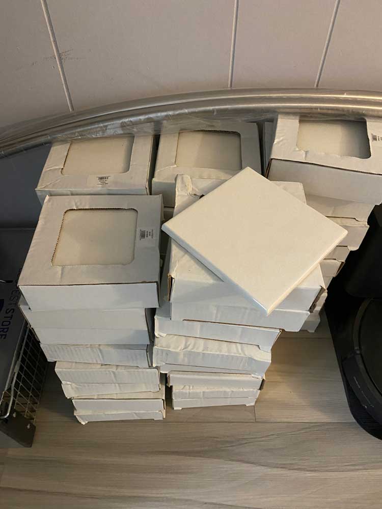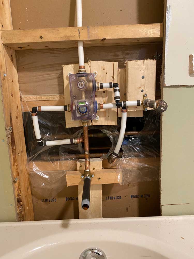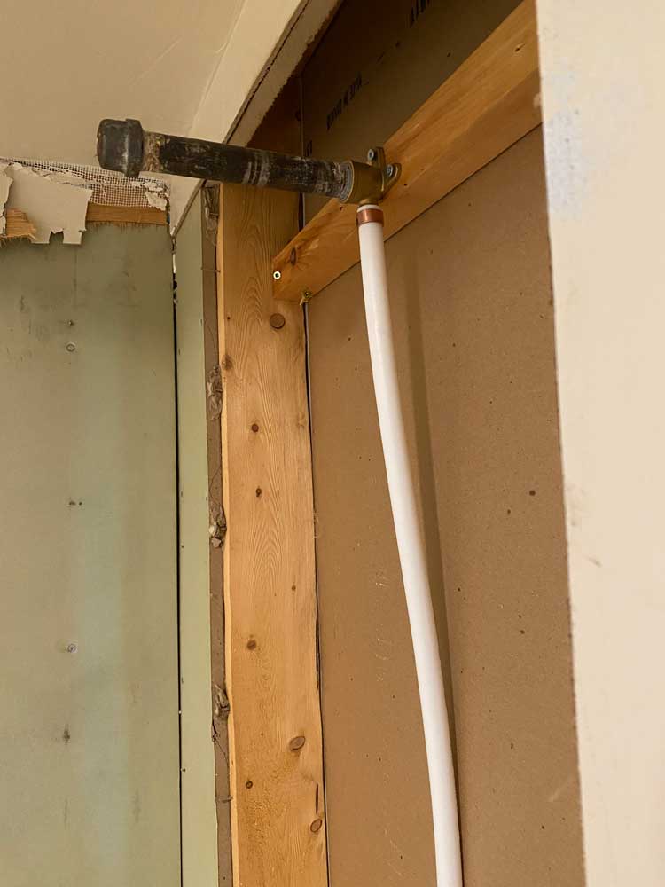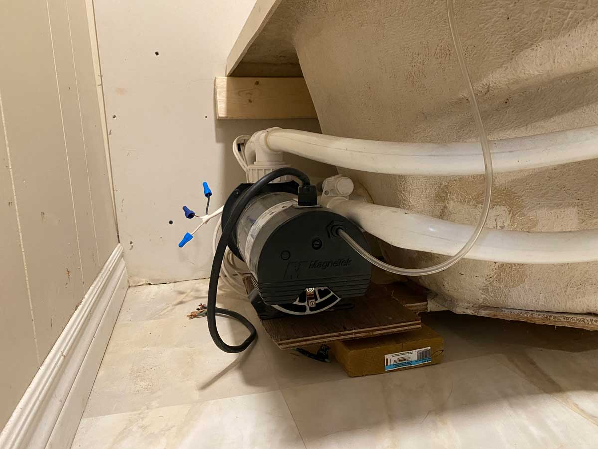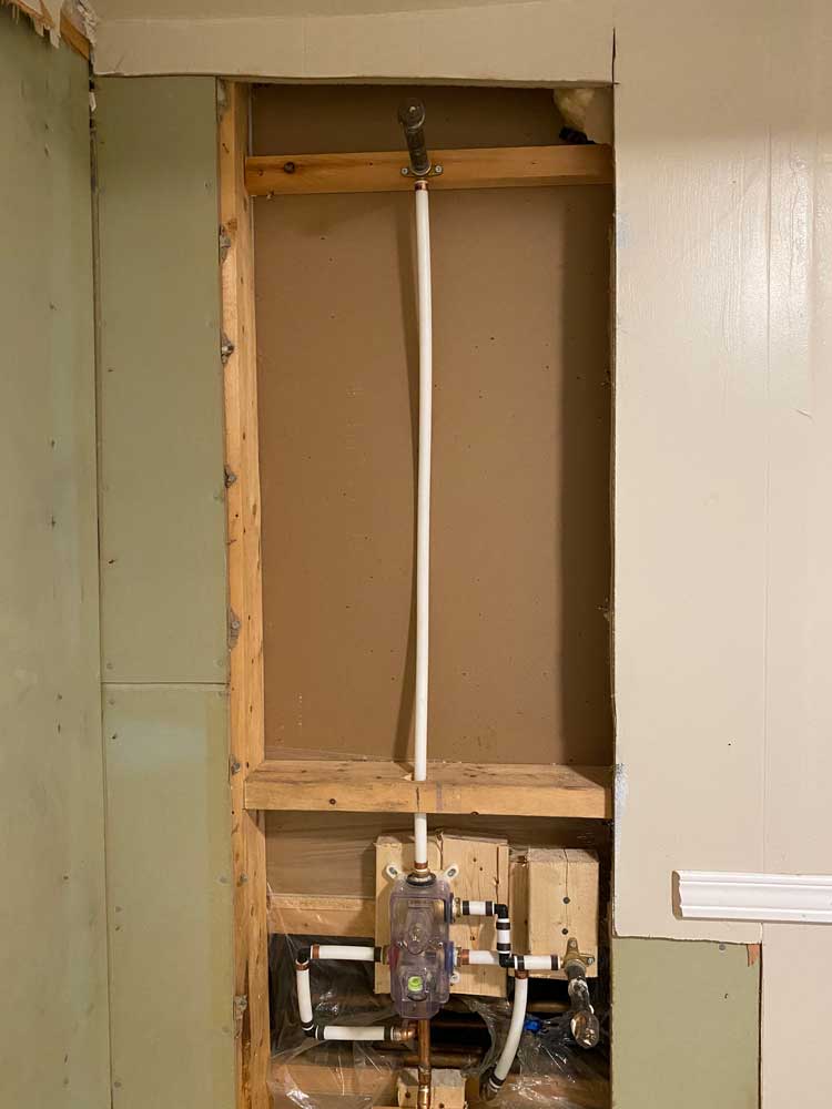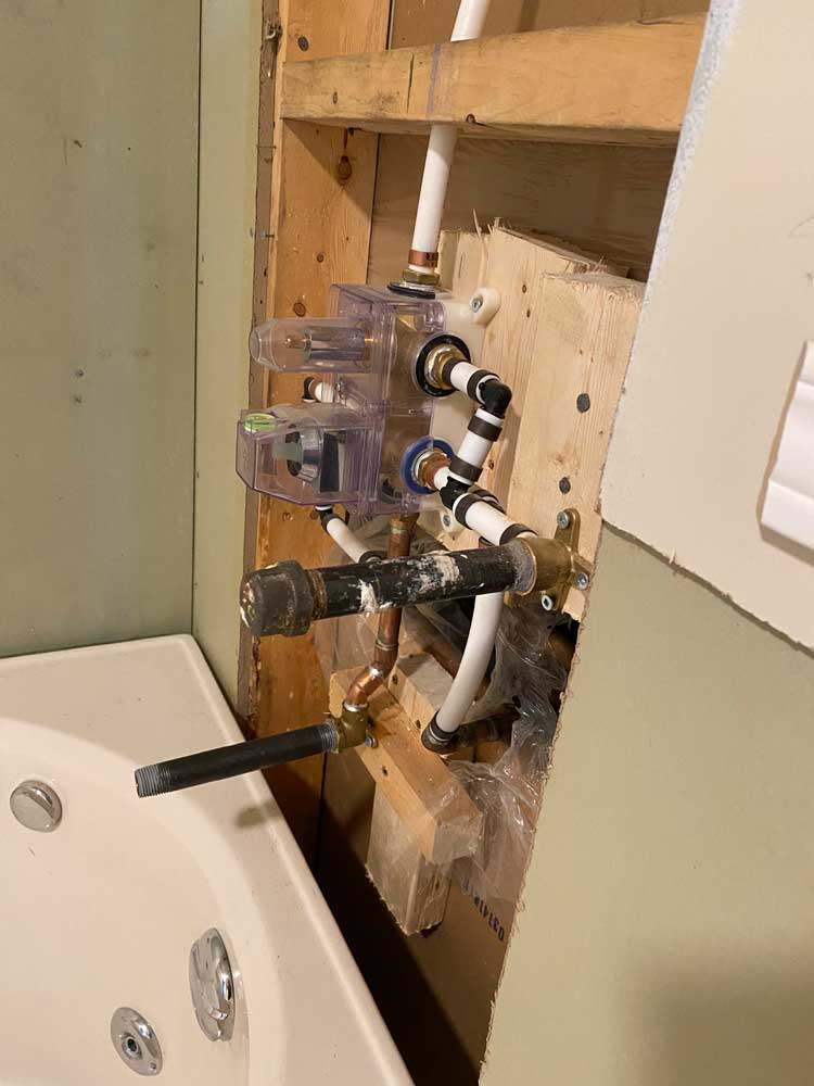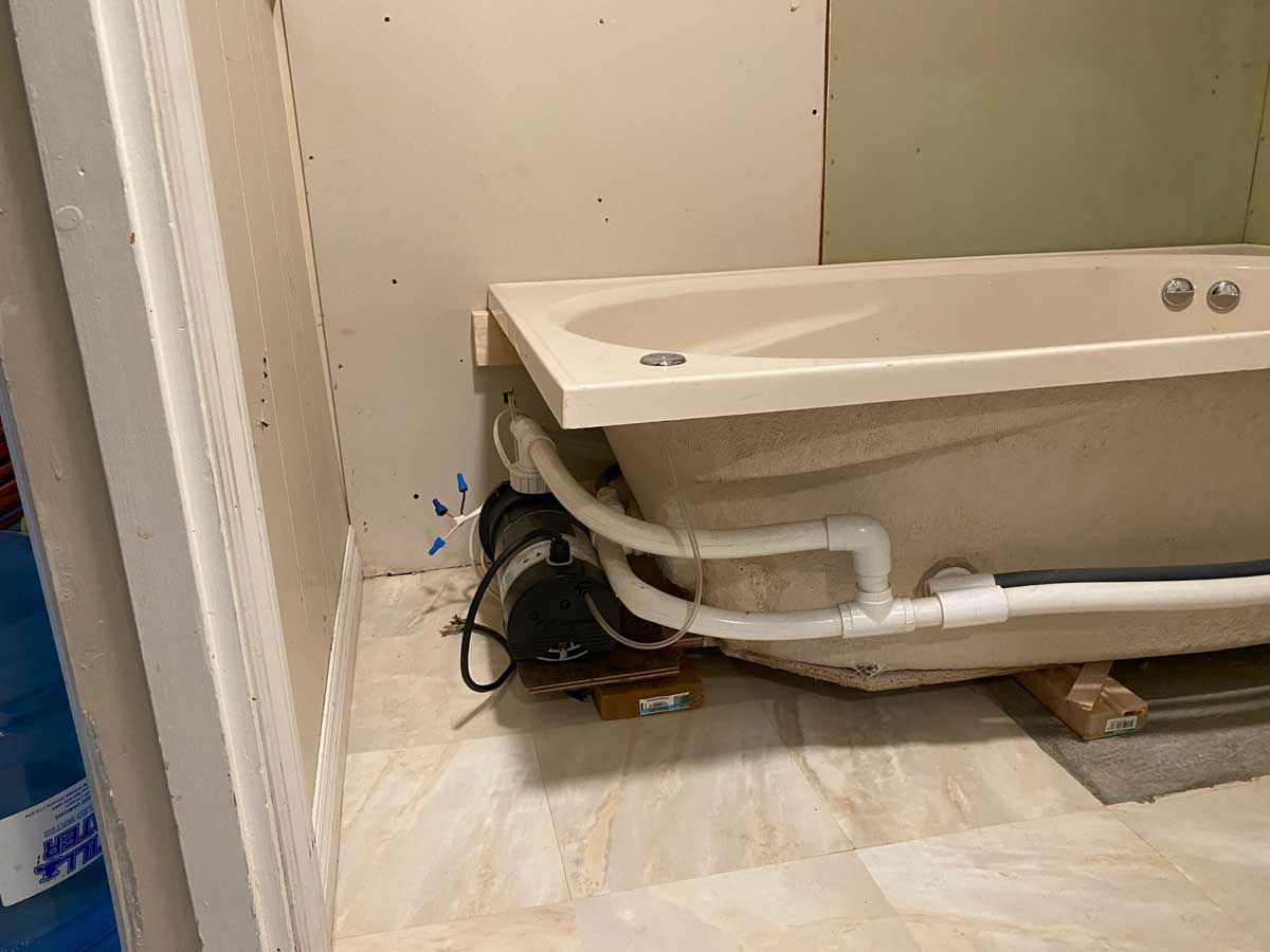 Transition from Shower Stall to Jacuzzi Tub 2025 Door was moved to the other wall when flooring was replaced 4 grab rails installed 6″ tiles – all plain – no pattern This is the shower and tub hardware that I purchased from Amazon Old Shower Stall before removal